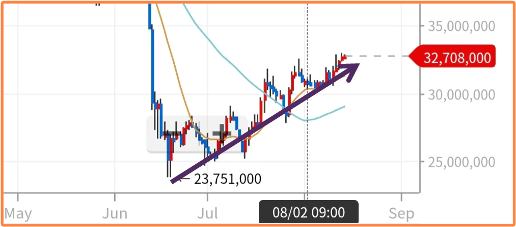 오늘은 초보투자자에게 추천하는 거래소에 대해서 알아보겠습니다. 비트코인이 바닥을 찍고 최근 상승을 하고 있습니다. 23,751,000원을 바닥으로 현재 8월 14일 기준으로 32,715,000원입니다. 약 1천만 원 정도 상승을 하였고 저점에서 투자를 하였다면 약 40% 정도의 수익을 실현할 수 있었습니다. 대부분의 뉴스나 코인 전문가들은 8월에 비트코인의 큰 상승을 예상하고 있습니다. 아직 상승은 시작도 안 했다는 뜻으로도 해석이 됩니다.