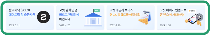 비트코인을 받고 안 팔아도 상관없고, 바로 팔고 현금으로 인출해도 상관없습니다. 사실 신뢰할만한 거래소 이기 때문에 비트코인을 무료로 받고 한번 존버하는 것도 괜찮은 방법이라고 생각합니다. 이외에도 코빗에서는 다양한 이벤트를 진행하고 있습니다.