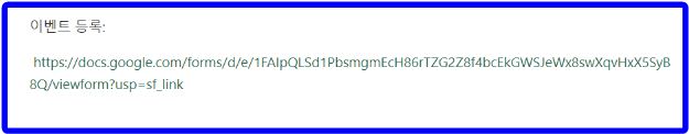이벤트페이지에 들어가면 위와 같은 이벤트 등록 구글 폼이 있습니다. 클릭 후 복사한 UID를 입력하면 됩니다.