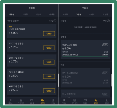 먼저 고팍스에는 다양한 투자 프로그램이 있습니다. 또한 이 투자 프로그램을 통해 다양한 방법으로 수익을 창출할 수 있습니다. 일반 다른 거래소에서는 찾아볼 수 없는 엄청난 혜택입니다.