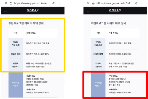 고팍스 일반 링크로 가입 vs 프리미엄 링크로 가입