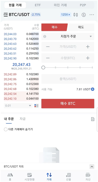바이낸스는 토스의 주식 화면과 비슷합니다. 아마 편리성을 강조했기 때문인 것 같습니다. 모바일 편의성이나 인터페이스는 모두 깔끔하고 거래하기 편리하게 되어있습니다.