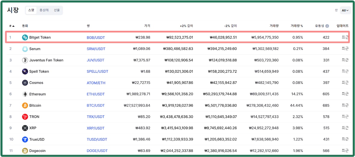 | 거래소명 | 업비트 | 빗썸 | MEXC | Bitget |