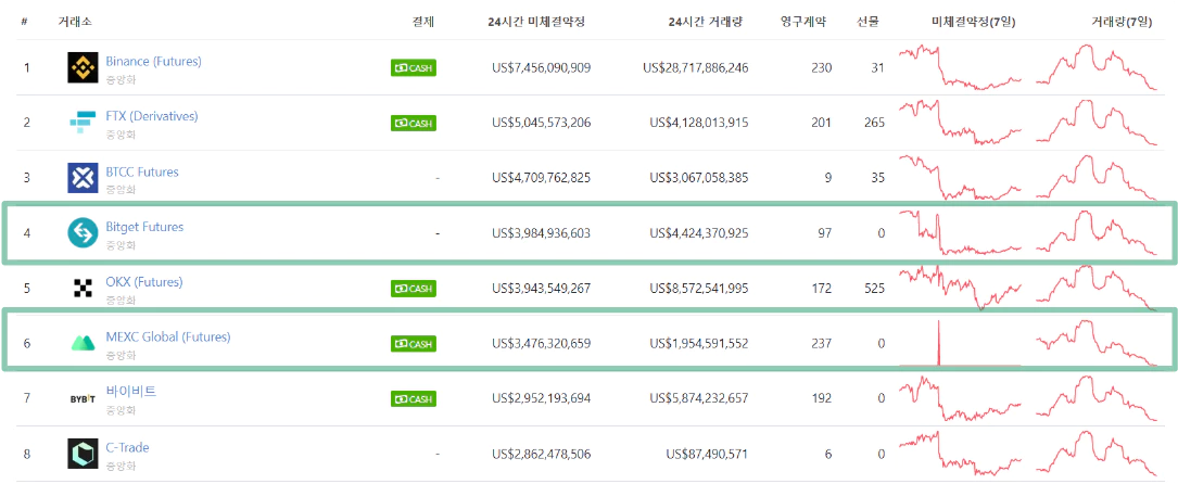 다음은 MEXC라는 가상화폐 거래소입니다. 세계 파생상품 거래소 6위에 랭크되어있는 대형 거래소입니다. 비트겟처럼 수수료가 저렴합니다.