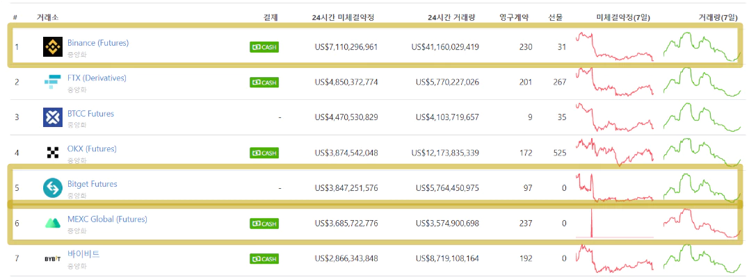 1위부터 7위 중 추천하는 거래소 TOP 4와 이유