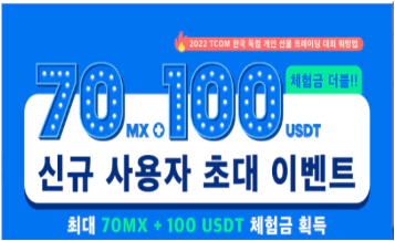 1. 가입혜택 : 50 USDT 선물체험금 증정, 70MX 거래소 코인 지급(약 10만 원 상당)