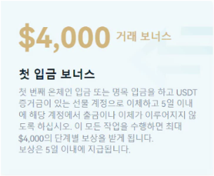 가입 이벤트 1 : 가상화폐 입금하면 입금한 금액의 10%, 최대 4,000달러 지급