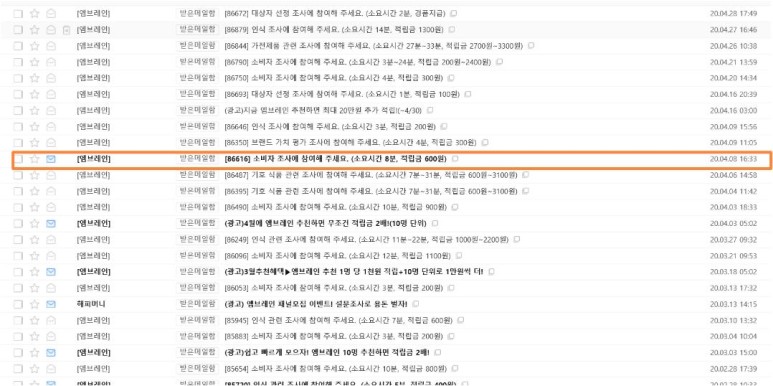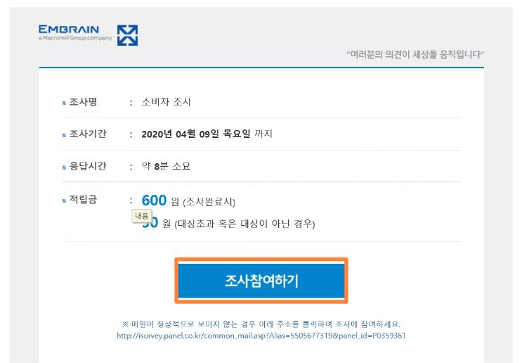 내 이메일에 도착한 설문조사를 클릭하시고 조사참여버튼만 누르면됩니다!! 참 쉽죠~!!!