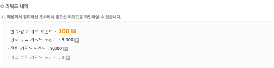 단점 : 설문조사 시 PC를 이용해야 하는 경우가 종종 있음. 10,000원이상 적립되야 현금전환이 가능함.(그 이하는 문화상품권으로 가능)