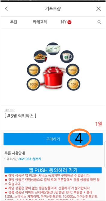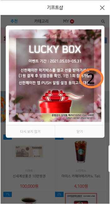 1. 신한페이 판의 기프트샾에서 LUCKY BOX 열고 적립받기!!