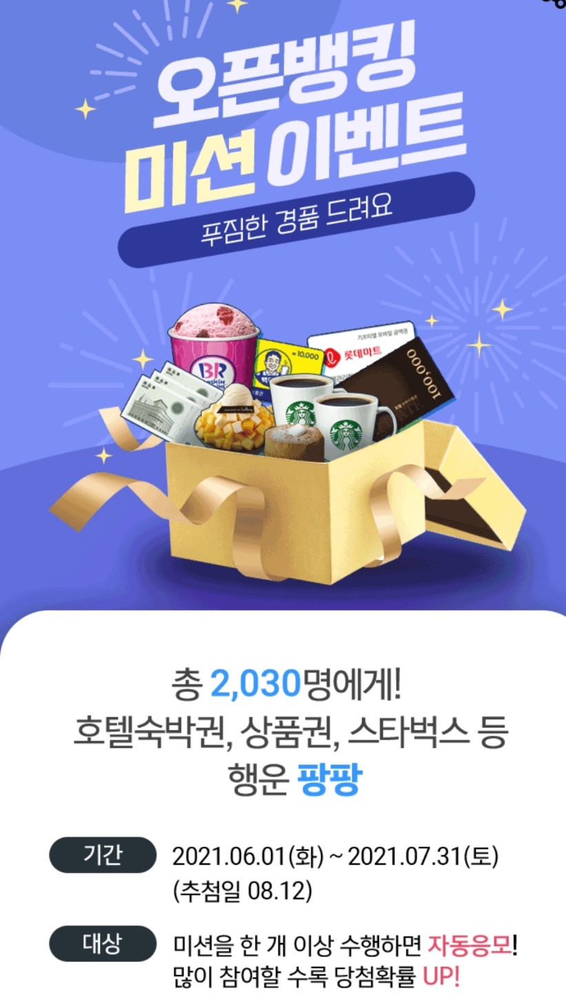 요즘 은행별로 오픈뱅킹 가입자를 유치하기 위해서 다양한 이벤트를 진행하고 있습니다.