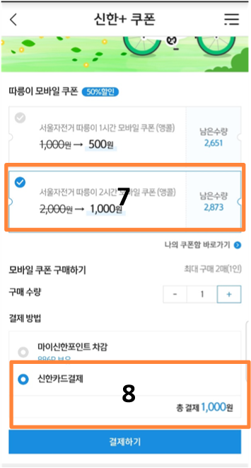 1. 신한페이 판에서 따릉이 이용권 할인받아 구매하기