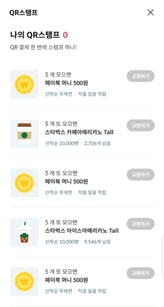 따라서 올해 첫 페이북 QR코드 적립 + 한 달 5만원 이상 사용 시 총 10,000원의 페이북 머니를 지급받을 수 있습니다. 이와 더불어 결제할 때마다 스탬프를 지급받아 페이북 머니 또는 스타벅스 쿠폰을 받을 수 있습니다.