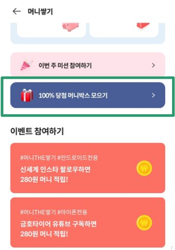 '100% 당첨 머니박스 모으기->머니박스 열기'