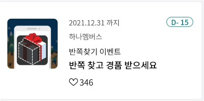 12월 이벤트 : 반쪽찾기 이벤트(하나멤버스 + 하나원큐), 클릭하고 머니쌓기 참여하기 이벤트(100하나머니, 치킨쿠폰), 하나머니 사용하고(500원씩 총 5000머니 적립)