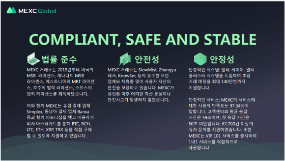 이와 더불어 가장 중요한 점은 보안이라고 생각합니다. 기존 거래소들은 암호화폐 해킹 등으로 이슈가 생겼고 이로 인해 자산이 사라지거나 해킹당하는 사례들도 있었습니다. 이러한 점에서 볼 때 MEXC거래소는 안전한 거래소에 속한다고 할 수 있습니다. 한 번도 해킹의 사례가 없었기 때문입니다.
